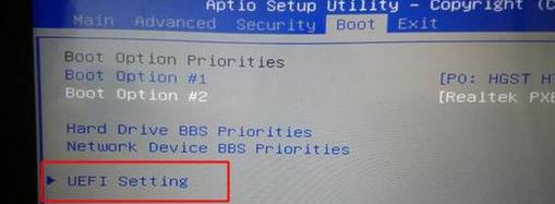 2、轉(zhuǎn)到Boot界面,選擇UEFI Setting回車(chē),如圖所示: