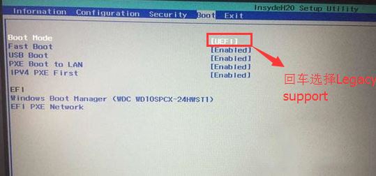4、切換到Boot,把Boot Mode從UEFI改成Legacy Support;