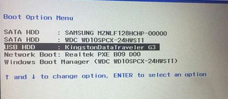 6、插入制作好的U盤啟動盤,重啟按F12或FN+F12調出啟動管理對話框,選擇USB HDD識別到U盤啟動進入PE,回車;