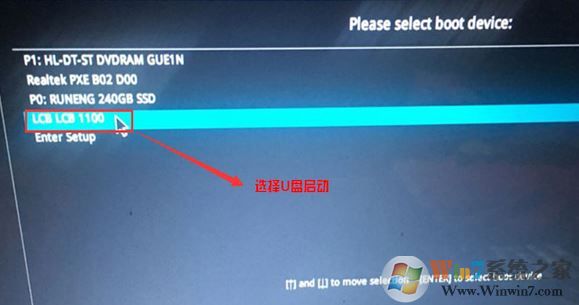 4、插入U(xiǎn)盤啟動(dòng)盤,重啟按ESC選擇識(shí)別到U盤啟動(dòng)項(xiàng),回車;