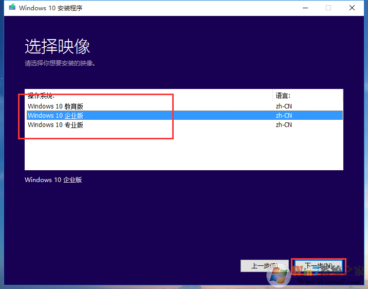 (4)選擇你Windows 10 Version 1803.iso 光盤里面的系統(tǒng)版本 一般安裝企業(yè)版或者專業(yè)版