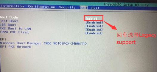 4、切換到Boot,把Boot Mode從UEFI改成Legacy Support;