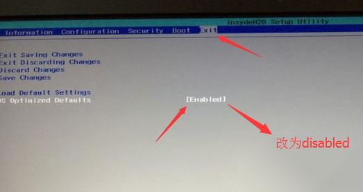 2、轉(zhuǎn)到Exit,把OS Optimized Defaults設(shè)置為Disabled或Other OS;