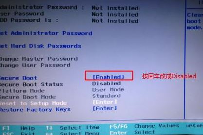 1、開機一直按F2或(FN+F2)進入BIOS,按→方向鍵切換到Security,選擇Secure Boot回車設(shè)置成Disabled;