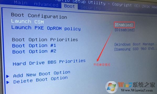 5、CSM 改成 ENabled 改成啟用狀態(tài),(如果是灰色不可以選擇,先按F10保存退出再次進入就可以選擇了)