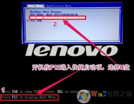 5、保存設(shè)置后自動(dòng)重啟進(jìn)入LOGO畫(huà)面時(shí),一直按F12,選擇U盤(pán)啟動(dòng),如下圖所示: