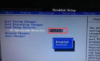 4、在Restart下,選擇OS Optimized Defaults回車(chē),改成Disabled或Other OS,接著選擇Load Setup Defaults回車(chē)進(jìn)行加載,然后按F10保存設(shè)置。