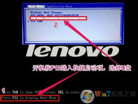 5、保存設置后自動重啟進入LOGO畫面時,一直按F12,選擇U盤啟動,如下圖所示;