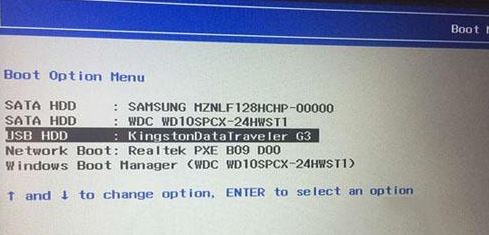6、插入制作好的U盤啟動(dòng)盤,重啟按F12或FN+F12調(diào)出啟動(dòng)管理對(duì)話框,選擇USB HDD識(shí)別到U盤啟動(dòng)進(jìn)入PE,回