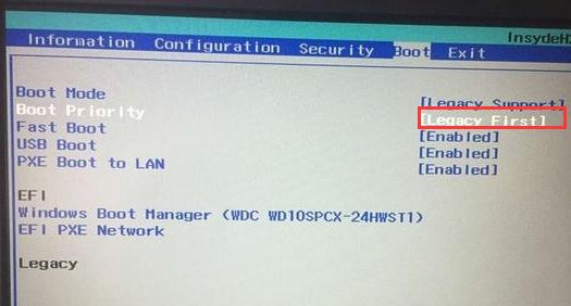 5、再把Boot Priority設(shè)置成Legacy First,按F10彈出窗口選擇yes回車;