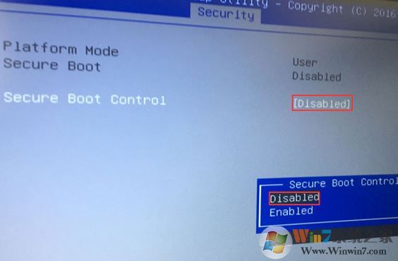 1、重啟筆記本按esc進入BIOS設(shè)置,然后按F7進入高級模式,按→方向鍵移動到Security,選擇Secure Boot,然后回車進入把Secure Boot control選enabled改為disabled關(guān)閉安全啟動,然后按F10保存重啟;