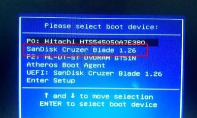 3、插入U盤啟動盤,重啟按ESC選擇識別到U盤啟動項,回車;