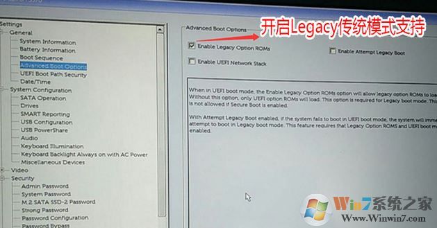 3、切換到Advanced Boot Options將右邊的Enable legacy option roms選項(xiàng)打勾,如下圖所示;
