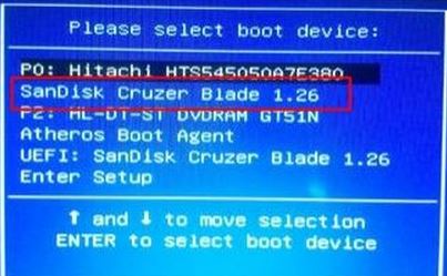 3、插入U盤啟動盤,重啟按ESC選擇識別到U盤啟動項,回車;
