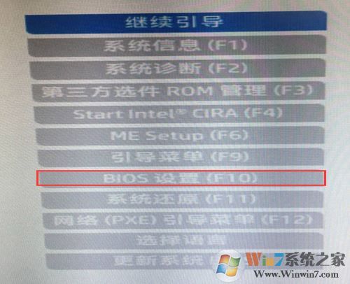 1、開(kāi)機(jī)一直按按ESC,出現(xiàn)以下界面后,再按F10進(jìn)入BIOS,如下圖所示;