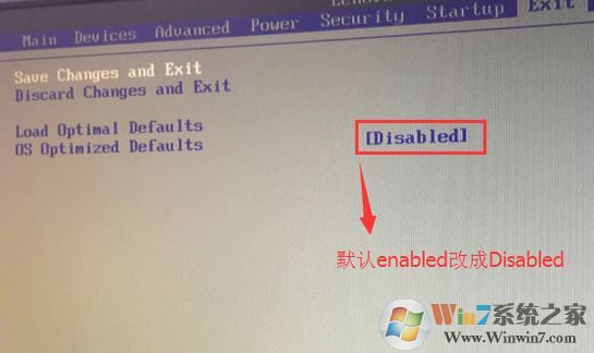 2、轉(zhuǎn)到Exit,把OS Optimized Defaults設(shè)置為Disabled;
