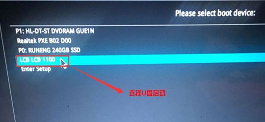 5、插入U盤啟動盤,重啟按ESC選擇識別到U盤啟動項,回車,如圖: