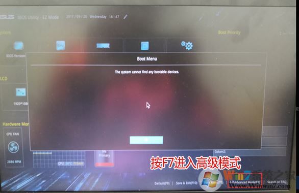 1、重啟筆記本按esc進(jìn)入BIOS設(shè)置,然后按F7進(jìn)入高級模式,如圖所示: