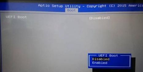 3、選擇UEFI Boot回車設(shè)置成Disabled,如果有CSM,設(shè)置為Enabled,然后按F4或F10保存設(shè)置。