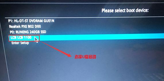 5、插入U(xiǎn)盤啟動(dòng)盤,重啟按ESC選擇識(shí)別到U盤啟動(dòng)項(xiàng),回車,如圖: