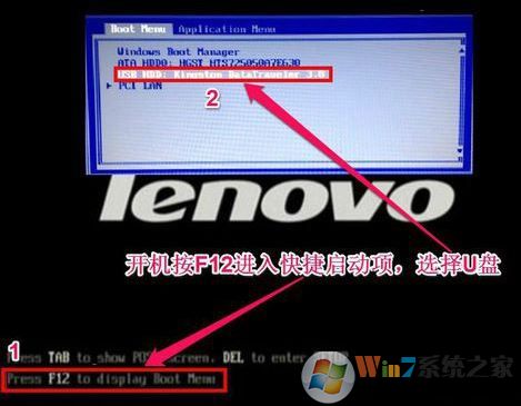 5、保存設(shè)置后自動(dòng)重啟進(jìn)入LOGO畫(huà)面時(shí),一直按F12,選擇U盤啟動(dòng),如下圖所示;