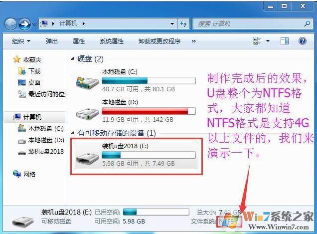 制作完成的啟動(dòng)U盤,文件格式是NTFS,支持4G以上文件哦。