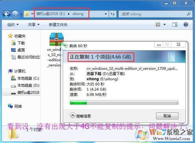 4G以上的文件也成功復(fù)制到U盤,問題全部解決。