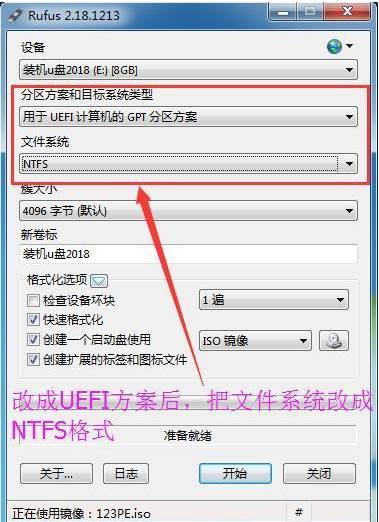 1,Rufus工具非常智能,如果你瀏覽選擇的文件少于4G,它自動(dòng)改成FAT32格式,如果超過4G,它會(huì)自動(dòng)改成NTFS格式,所以大家要注意看。這節(jié)課我們講的是如何讓啟動(dòng)盤直接支持4G以上文件,所以我們?nèi)扛某蒒TFS格式。