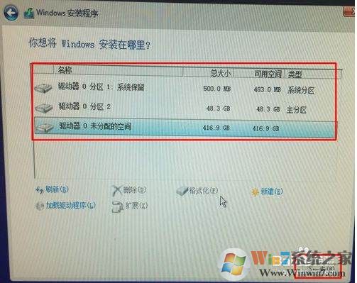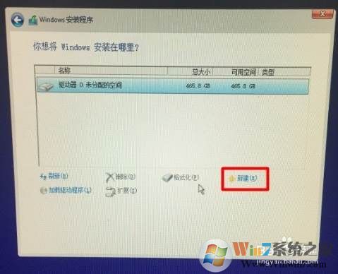 1、win7安裝時(shí)會(huì)進(jìn)入以下分區(qū)界面,下方是一塊全新未分區(qū)的硬盤;