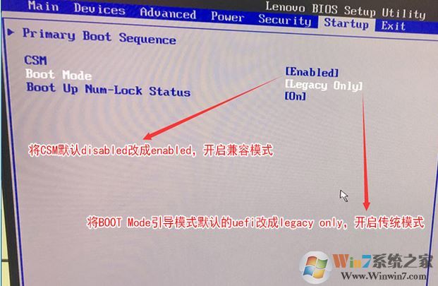 3、切換到Boot,把Boot Mode從UEFI改成Legacy only引導(dǎo)模式,再把csm默認(rèn)disabled改成enabled,開啟兼容模式;