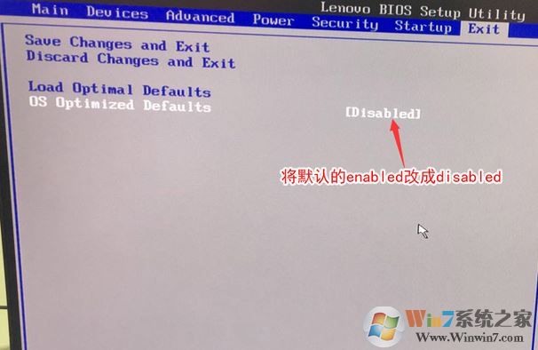 2、轉(zhuǎn)到Exit,把OS Optimized Defaults設(shè)置為Disabled;