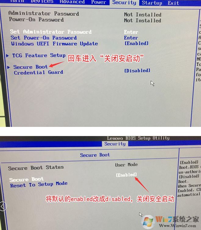 1、開機(jī)一直按F2或(FN+F2)進(jìn)入BIOS,按→方向鍵切換到Security,選擇Secure Boot回車設(shè)置成Disabled;