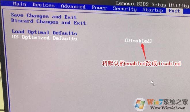 2、轉(zhuǎn)到Exit,把OS Optimized Defaults設(shè)置為Disabled;