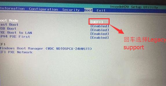 4、切換到Boot,把Boot Mode從UEFI改成Legacy Support;