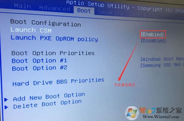 2、切換到BOOT的選項(xiàng),把Launch CSM由disabled改成enabled,開啟兼容模式,然后按F10保存設(shè)置;