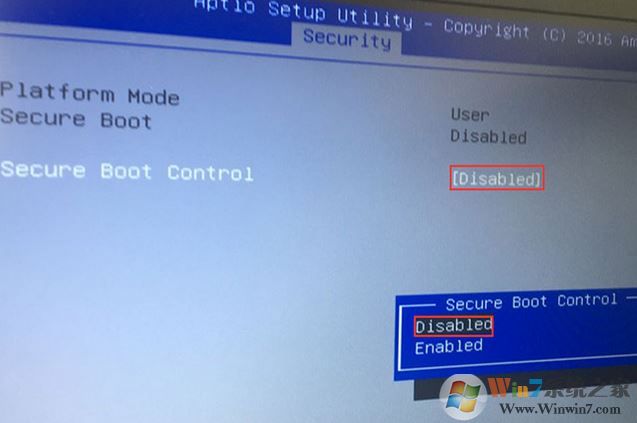 1、重啟筆記本按esc進(jìn)入BIOS設(shè)置,然后按F7進(jìn)入高級(jí)模式,按→方向鍵移動(dòng)到Security,選擇Secure Boot,然后回車進(jìn)入把Secure Boot control選enabled改為disabled關(guān)閉安全啟動(dòng);