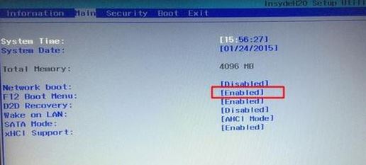 4、轉(zhuǎn)到Main,選擇F12 Boot Menu回車,設(shè)置為Enabled,按F10選擇Yes回車保存修改,如下圖所示;