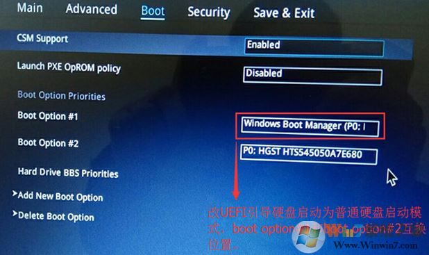 2、重啟后切換到BOOT的選項(xiàng),分別把fast boot和csm support由disabled改成enabled,分別開(kāi)啟快速啟動(dòng)和兼容模式;