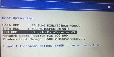 5、插入制作好的U盤啟動盤,重啟按F12或FN+F12調出啟動管理對話框,選擇USB HDD識別到U盤啟動進入PE,回車;