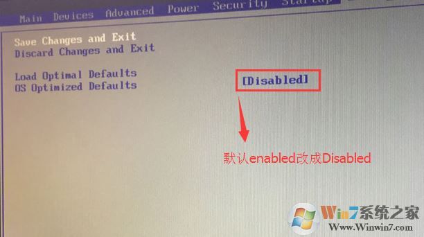 2、轉到Exit,把OS Optimized Defaults設置為Disabled;