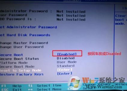 1、開機(jī)一直按F2或(FN+F2)進(jìn)入BIOS,按→方向鍵切換到Security,選擇Secure Boot回車設(shè)置成Disabled,關(guān)閉安全啟動(dòng),否則安裝win7會(huì)失敗,如下圖所示;