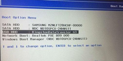 7、插入制作好的U盤啟動(dòng)盤,重啟按F12或FN+F12調(diào)出啟動(dòng)管理對(duì)話框,選擇USB HDD識(shí)別到U盤啟動(dòng)進(jìn)入PE,回車進(jìn)入PE;