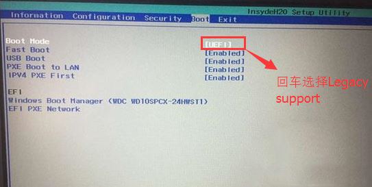 4、切換到Boot,把Boot Mode從UEFI改成Legacy Support,改傳統(tǒng)引導(dǎo),如圖: