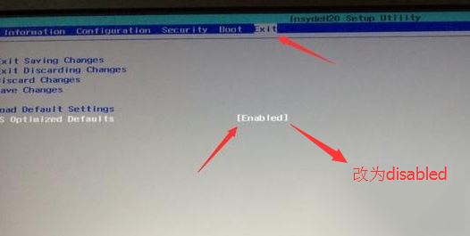 2、轉(zhuǎn)到Exit,把OS Optimized Defaults設(shè)置為Disabled或Other OS,如圖: