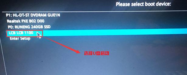 4、插入U盤啟動盤,重啟按ESC選擇識別到U盤啟動項,回車;