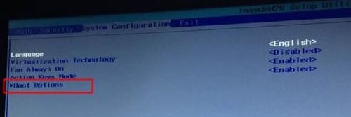 2、移動(dòng)鍵盤右鍵頭到System Configuration下,選擇Boot Options,按回車鍵進(jìn)入設(shè)置;