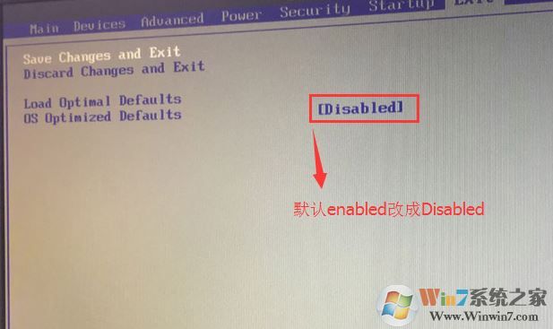 2、轉到Exit,把OS Optimized Defaults設置為Disabled;