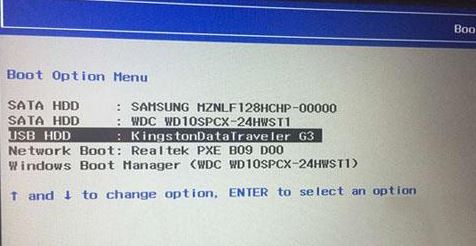 5、插入制作好的U盤啟動盤,重啟按F12或FN+F12調出啟動管理對話框,選擇USB HDD識別到U盤啟動進入PE,回車;