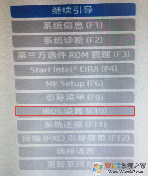 1、開機一直按按ESC,出現(xiàn)以下界面后,再按F10進入BIOS,如圖:
