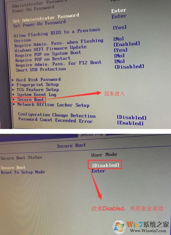 1、開機一直按F2或(FN+F2)進入BIOS,按→方向鍵切換到Security,選擇Secure Boot回車設(shè)置成Disabled;